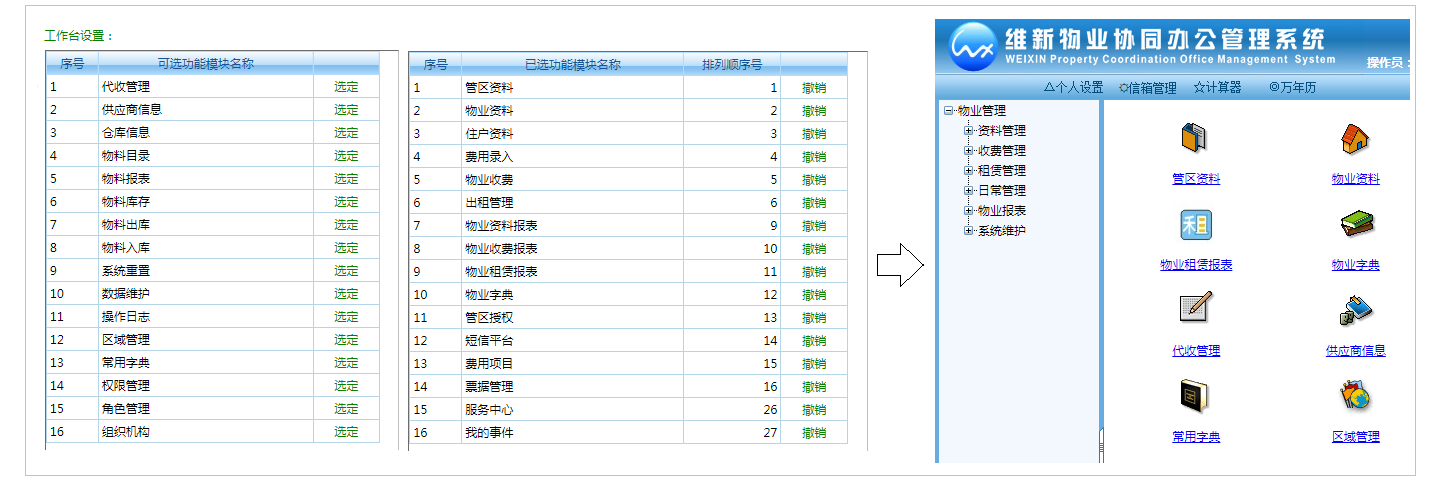维新物业协同办公管理系统WEB版我的工作台设置