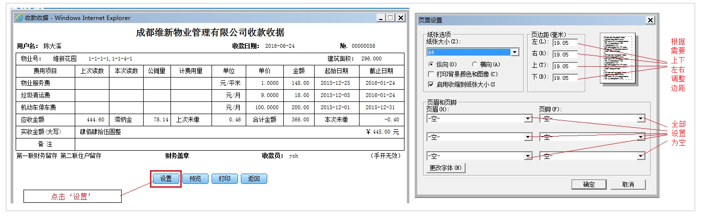 维新物业协同办公管理系统WEB版收据打印页面设置