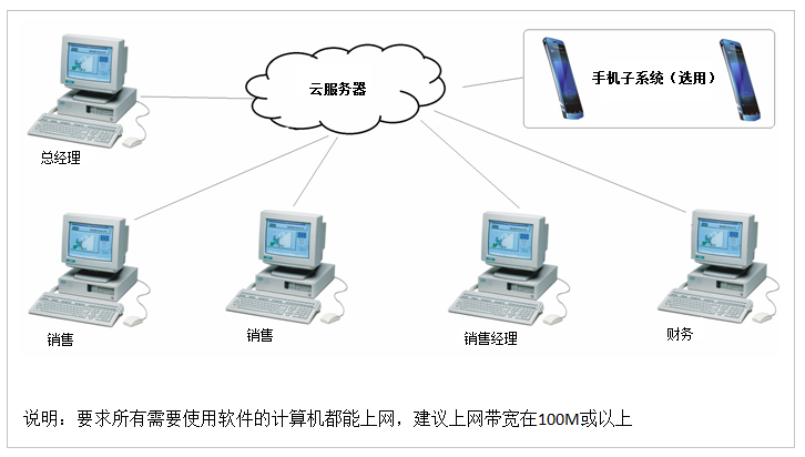 | 如果你公司工作人员不是集中在一个办公区,或者你希望能使用手机子系统,则建议你购买维新小微企业协同办公管理系统后将数据库放我公司云服务器上(首年免费),一年以后续缴软件维护费后也可以继续免费将数据库放我公司云服务器上。如果数据库放云服务器上,则你不需要自己准备数据库服务器及组建网络,减少大量硬件设备投入,但要求使用软件的计算机都要能上网且建议带宽不低于100M。